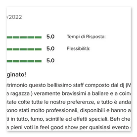 analizziamo gusti degli Sposi, generi preferiti, brani “must”, canzoni da evitare, età degli invitati, presenza di bambini o ospiti stranieri, momenti da valorizzare (ingresso, primo ballo, taglio torta, eventuali sorprese).